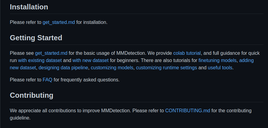 다음 보면 Installation과 Getting Start에 get_started.md 파일을 참고해 진행한다.