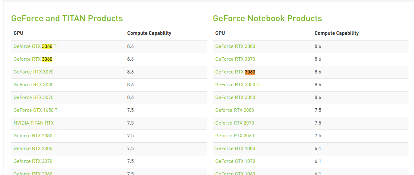 나는 RTX 3060을 쓰기 때문에 Ampere 구조이기 때문에 현재 CUDA capability는 sm_86과 같다.