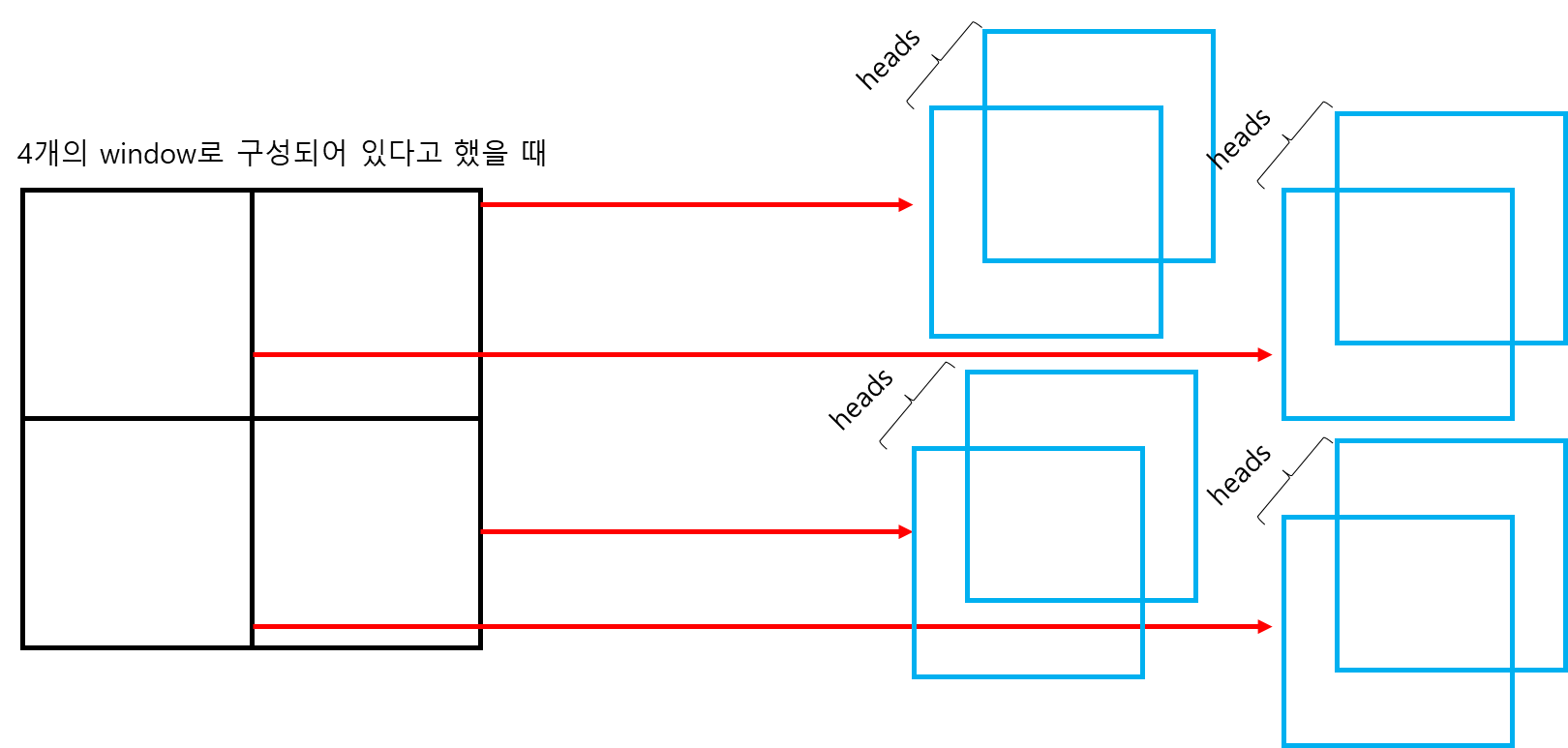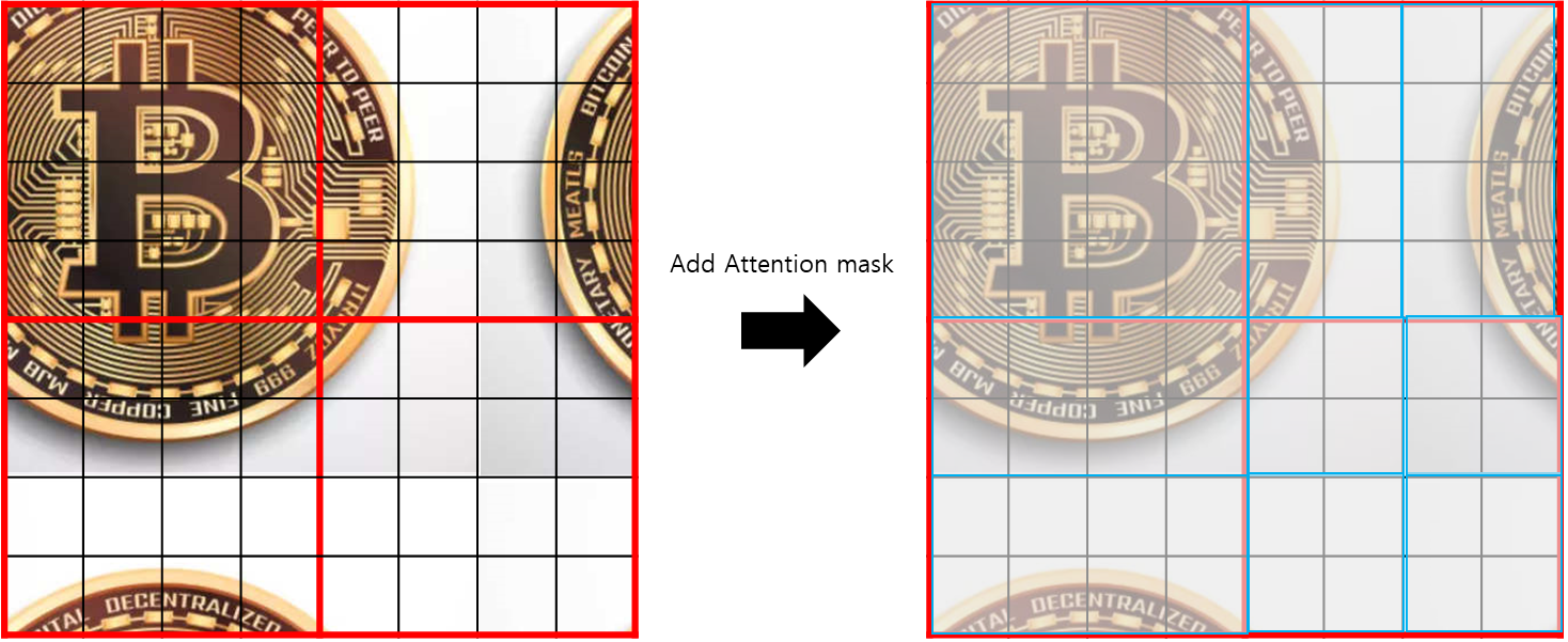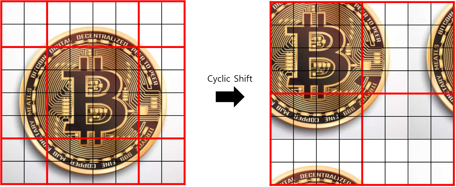 => 기존의 9개의 window에서 4개의 window로 window 간의 attention을 구할 수 있음.