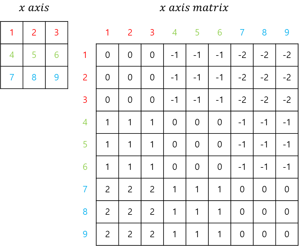 relative_position_M = x_axis_matrix + y_axis_matrix